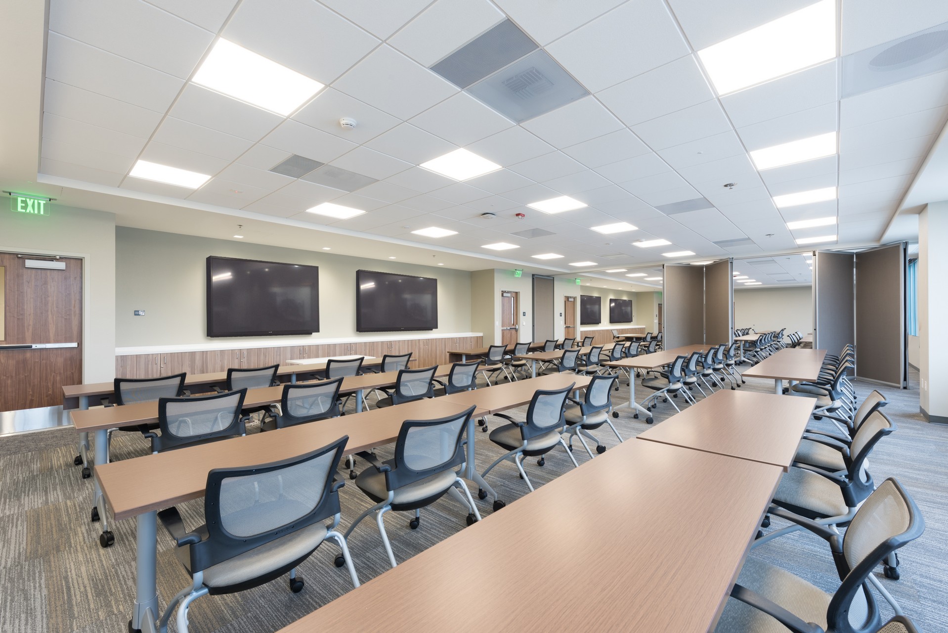The 14,394 SF renovation of the 3rd Floor in the College of Extended Studies included the demolition of existing office spaces and the construction of new classrooms, meeting rooms, and offices, complete with all new finishes, mechanical and electrical upgrades, operable wall partitions, and furniture for flexible space arrangements. Catering to the adult professional student, the design intent is to foster learning and a welcoming corporate feeling.